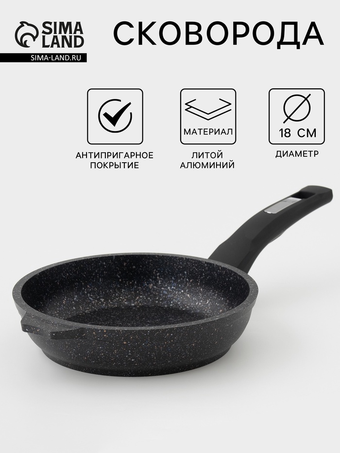 Сковорода Мечта «Гранит Star», d=18 см, пластиковая ручка, антипригарное покрытие, литой алюминий, тёмно-синяя