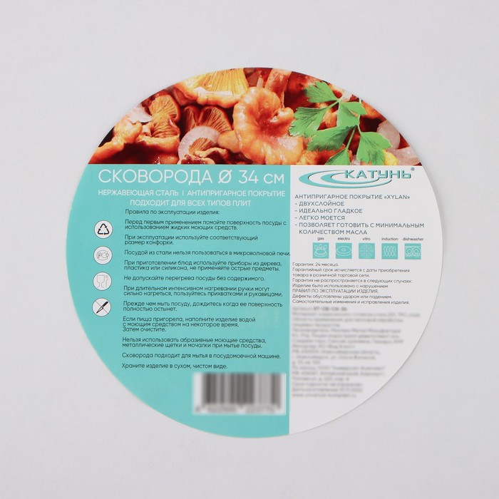 Сковорода «Общепит», d=34 см, толщина корпуса 0.6 мм, дно 3.5 мм, антипригарное покрытие, индукция, нержавеющая сталь