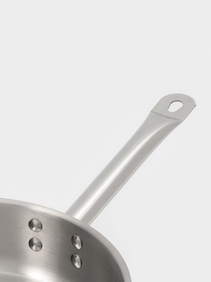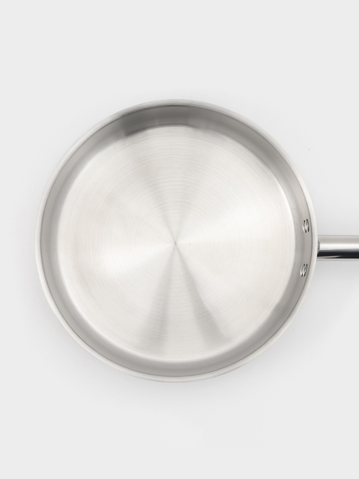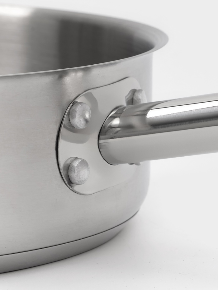 - Лёгкость в уходе: гладкая поверхность из нержавеющей стали легко очищается, а возможность мытья в посудомоечной машине делает уход за сотейником еще проще.