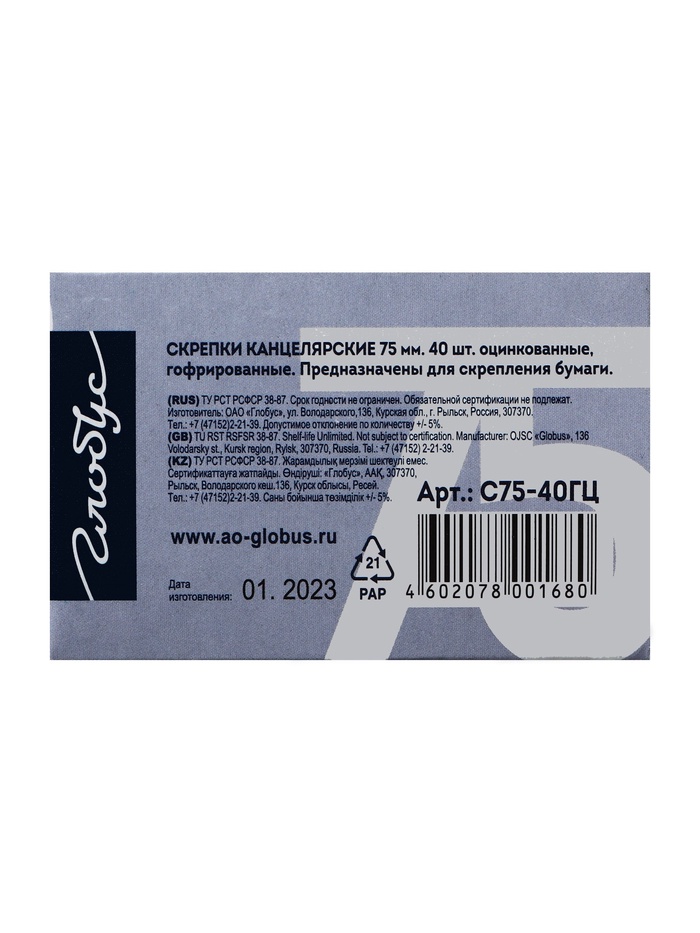 Скрепки «GLOBUS» сочетают в себе практичность и надежность. Незаменимы как для офисного использования, так и для домашней организации, они станут неотъемлемой частью вашего рабочего пространства. Поддержите порядок и систематизацию ваших документов таким простым, но существенным способом.