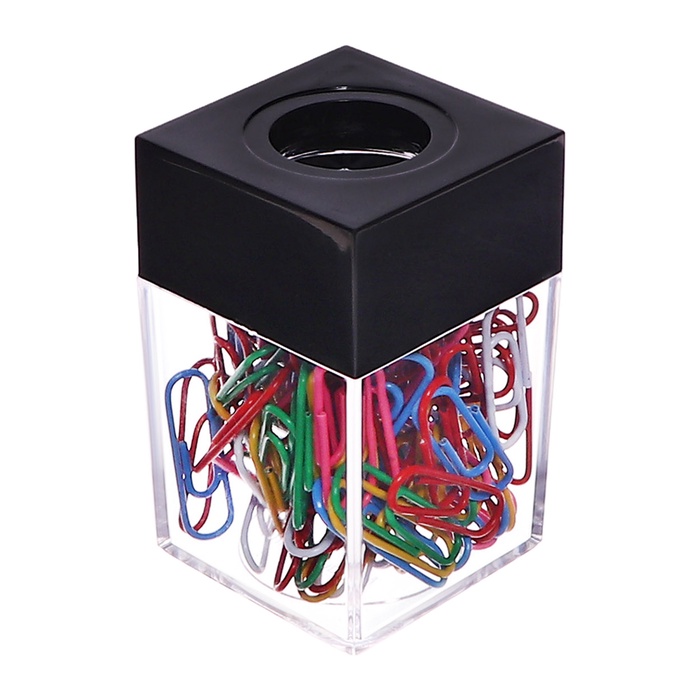 - Прозрачная конструкция позволяет быстро найти нужную скрепку.