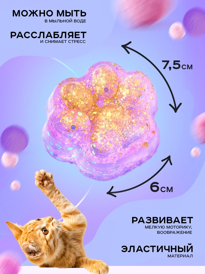 Игрушка-антистресс «Мяк-жмяк. Лапка» — это мягкая мялка в форме лапки, созданная для снятия стресса и улучшения настроения. Она станет отличным компаньоном для детей и взрослых, помогая отвлечься от забот и расслабиться. Яркий цвет и глиттеры делают её особенно привлекательной для детей.