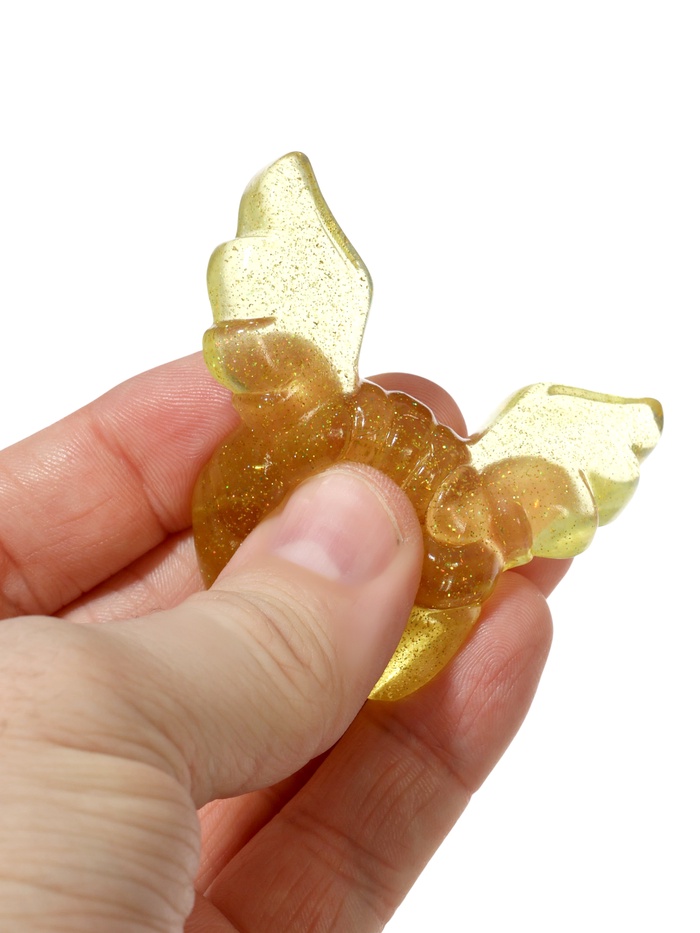 Сквиш антистресс-игрушка «Снитч» — это необычная игрушка в виде маленького шара с крыльями, выполненная в полупрозрачном золотистом оттенке с мерцающими блёстками. Благодаря выразительной форме и лёгкому сиянию сквиш сразу привлекает внимание и выглядит ярко, оригинально и немного загадочно. Такая игрушка отлично выделяется среди обычных антистрессов и добавляет в повседневность немного фантазийного настроения.