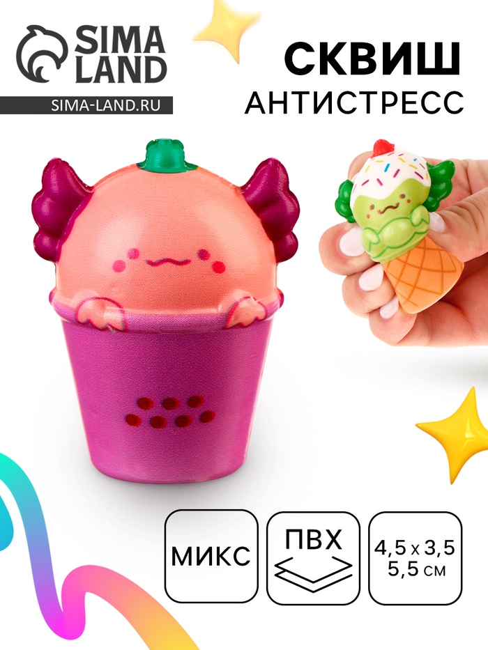 Сквиш игрушка «Вкусняшка» — это идеальный спутник для снятия напряжения и расслабления. Мягкая и приятная на ощупь, она помогает отвлечься от повседневных забот и подарить минуты спокойствия. Игрушка выполнена в форме милого аксолотля в стакане, который станет не только антистрессом, но и симпатичным аксессуаром на вашем столе.