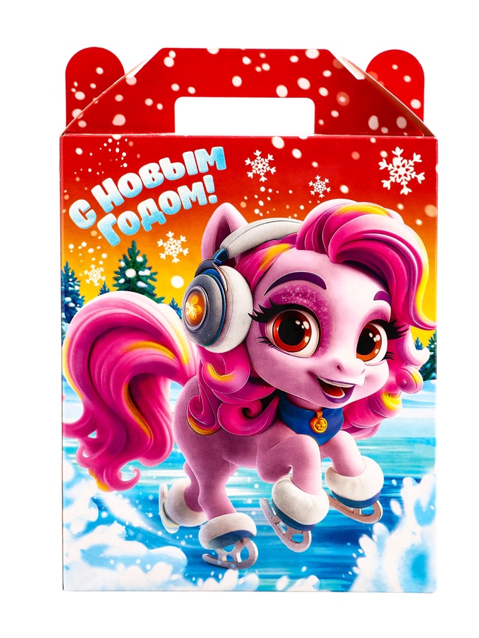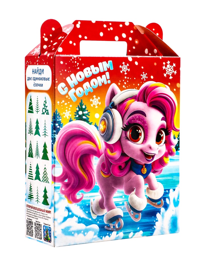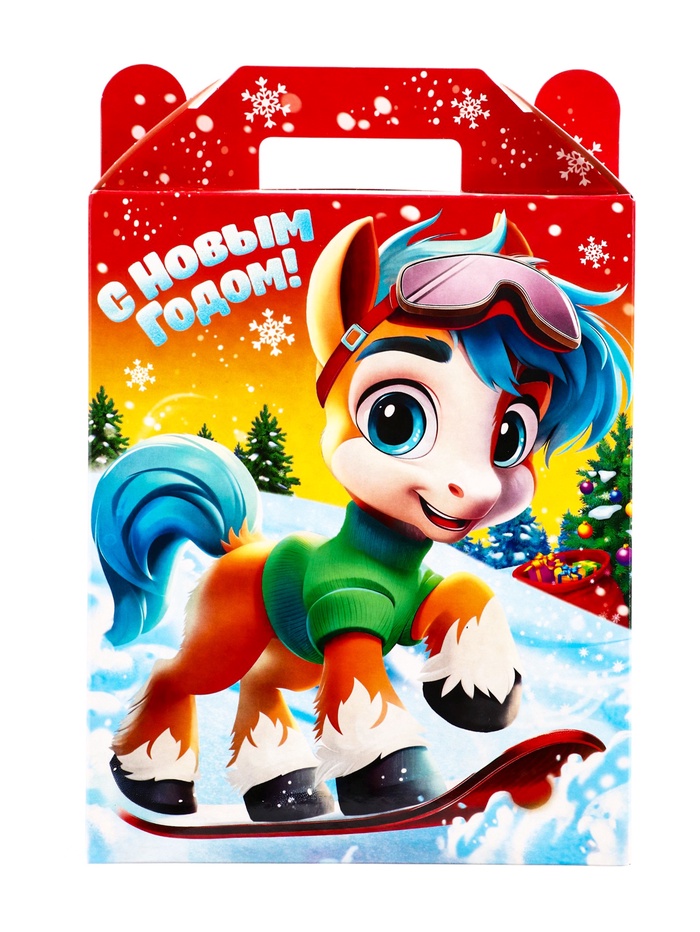 Новогодний подарок с лошадками «Марк и Няша» создан для детей, которые любят этих добрых персонажей. Эта коробка со сладостями становится продолжением знакомого мира, где живут две маленькие лошадки и их друзья.