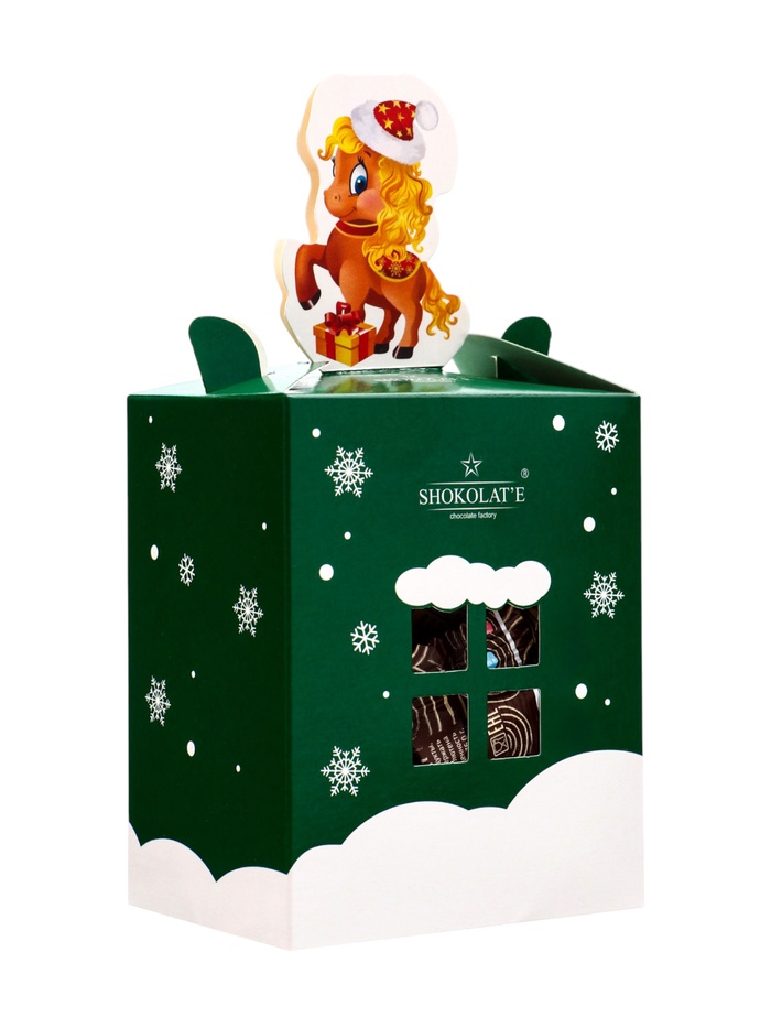 Сладкий подарок для года Лошади! Новогодний набор «Теремок с лошадью» — это готовый презент для ребенка, который сочетает угощение и тематическую упаковку. Коробка с символом 2026 года становится первым признаком наступающего праздника.