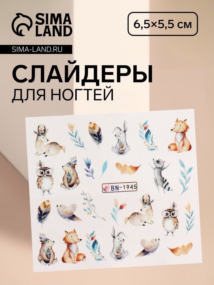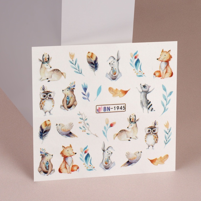 Слайдеры для ногтей «Лесные звери», разноцветные