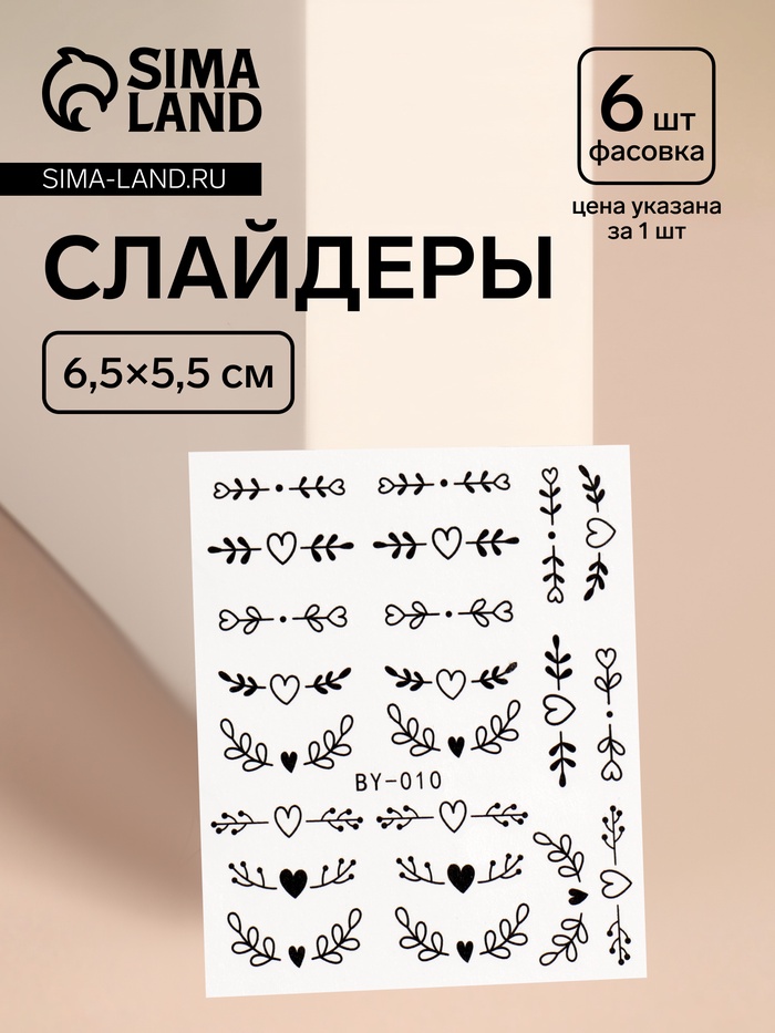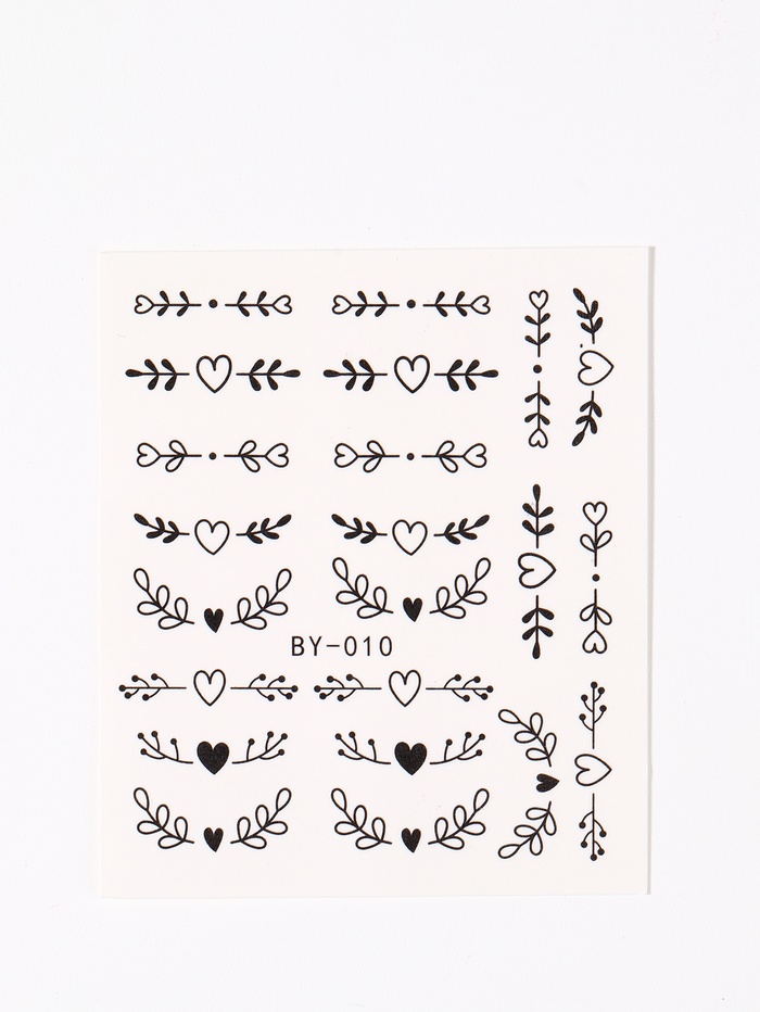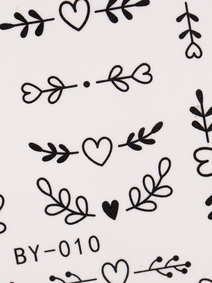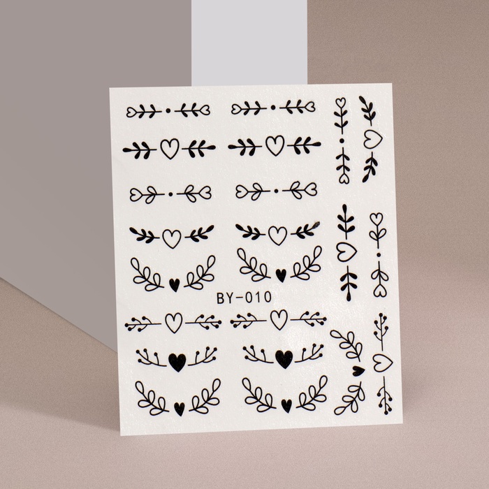 Слайдеры для ногтей «Сердечки и веточки», чёрные
