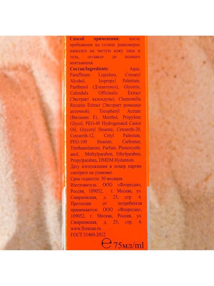 - Содержит пантенол, который способствует восстановлению кожи после загара.