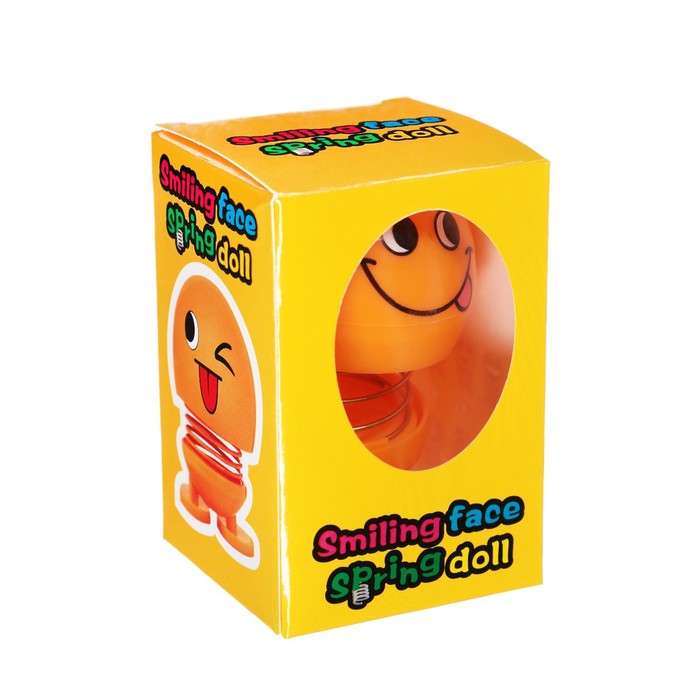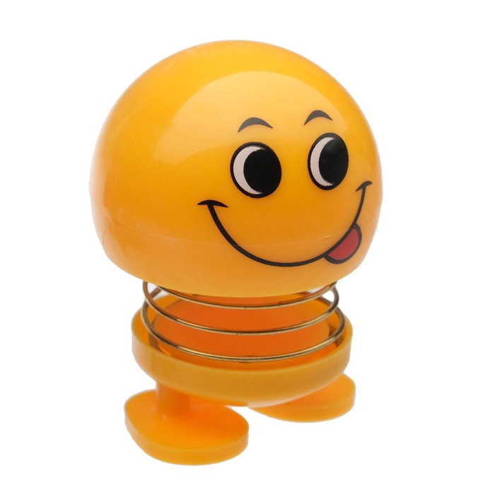 Смайл на пружинке, на панель в авто, язык, желтый