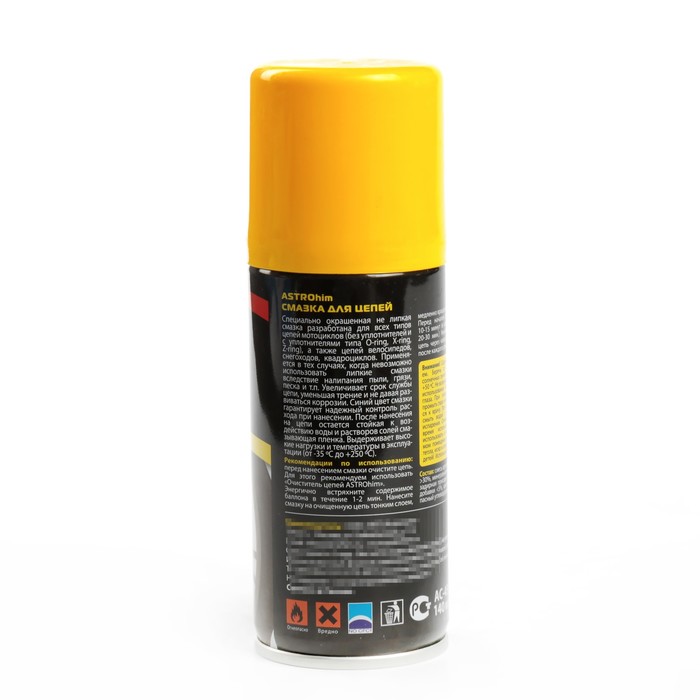 Специально окрашенная не липкая синтетическая смазка разработана для всех типов цепей мотоциклов (без уплотнителей и с уплотнителями типа О-ring, X-ring, Z-ring), а также цепей картов и велосипедов.