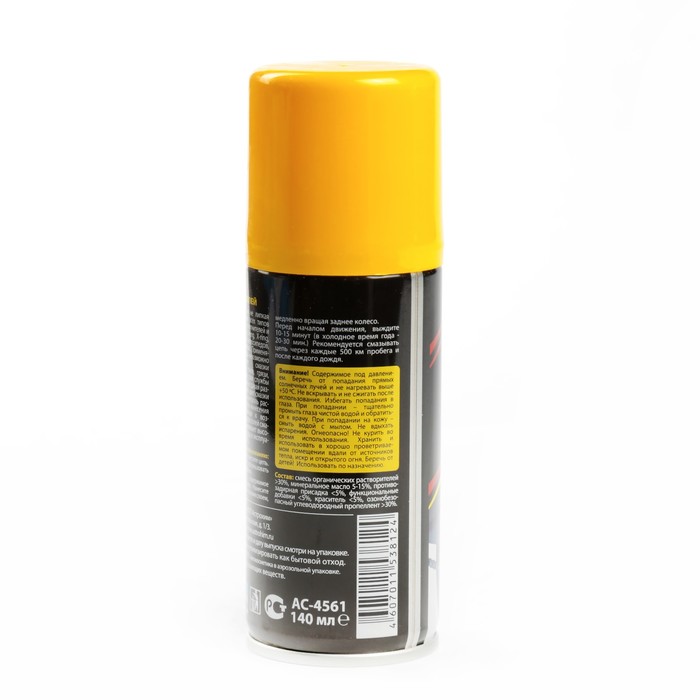 После нанесения на цепи остается хорошо держащаяся, смазывающая пленка, стойкая к воздействию воды и растворов солей, независимо от нагрузок и скоростей эксплуатации.