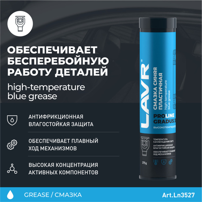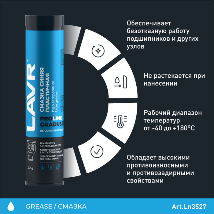 Пластичная смазка на литиевой основе обеспечивает бесперебойную работу деталей шасси транспортных средств, направляющих, шестерней, шариковых, роликовых, игольчатых подшипников, карданных валов, крестовин и шаровых опор. Обладает антифрикционными, противозадирными свойствами и сохраняет их даже при экстремальных температурных нагрузках. Смазка устойчива к вымыванию водой, не растекается при нанесении.