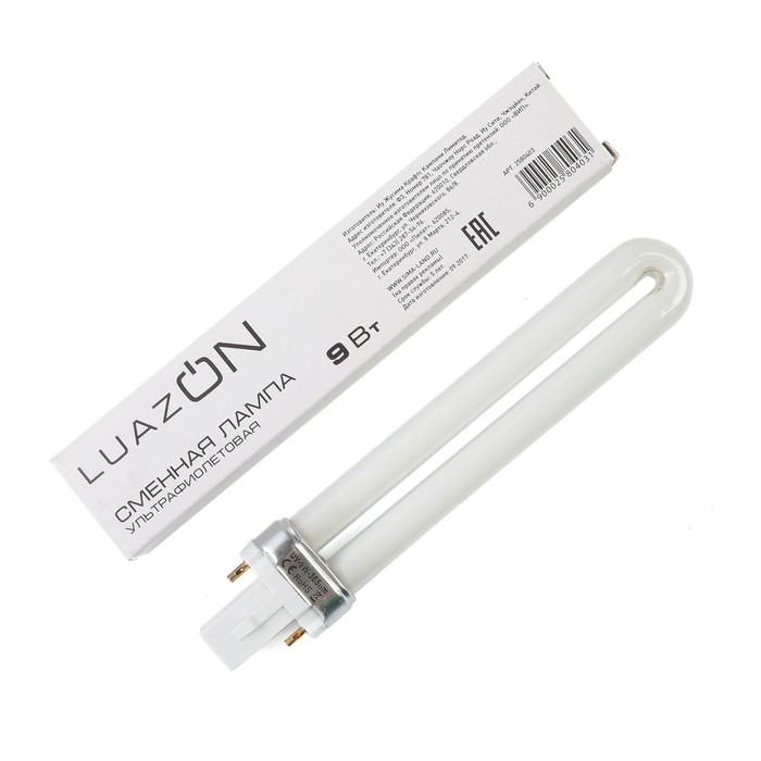Лампа Luazon LUF-20 предназначена для использования в УФ лампах для сушки лака. УФ лампы для сушки гель лака по истечению времени теряют мощность. Лампа UV-9W выделяется среди остальных большой мощностью, ровным излучением и стабильной работой, поэтому такая лампочка прослужит вам долгое время. Ультрафиолетовая лампа светит ультрафиолевым излучением синего цвета. Длина волны: 365 нм.