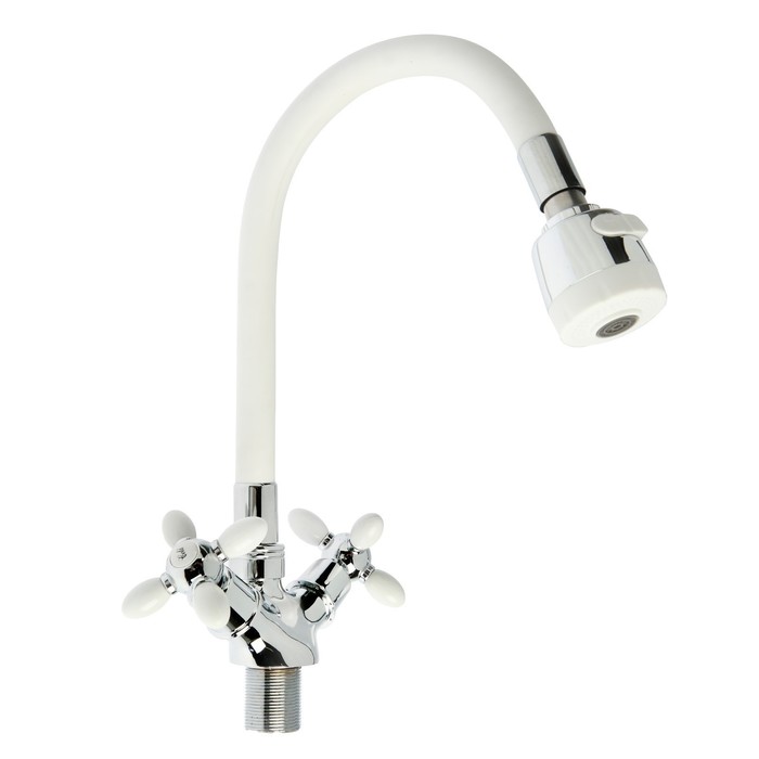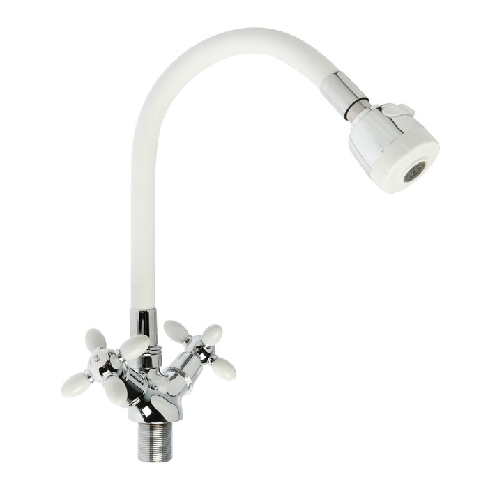 Смеситель для кухни ZEIN ZC2032, гибкий силиконовый излив, кран-букса латунь 1/2", белый/хром