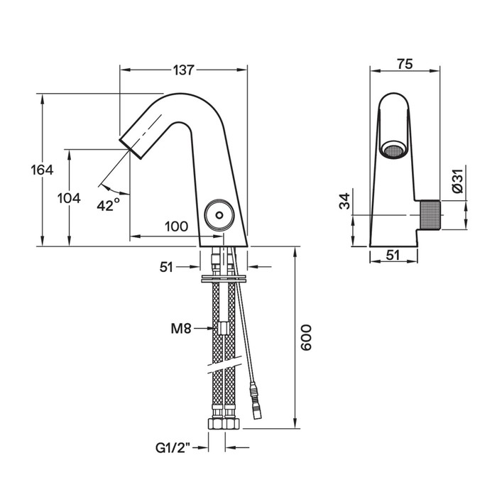 - Гибкая подводка 600 мм, G1/2"""": Обеспечивает удобство подключения к водопроводной системе.