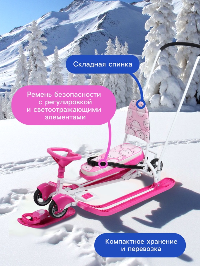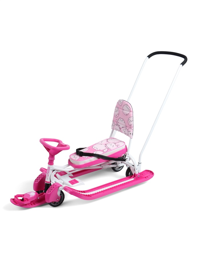 Подарите ребенку незабываемые эмоции с ярким и надежным снегокатом! Дизайн с котятами понравится девочкам, а продуманная конструкция обеспечит безопасность и комфорт на любых горках.