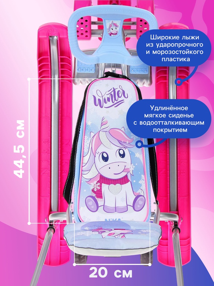 Снегокат с колёсами «Тимка спорт 6 Единорог», ТС6-М/ЕР, с родительской ручкой, со спинкой и ремнём безопасности, цвет розовый/сиреневый/серый