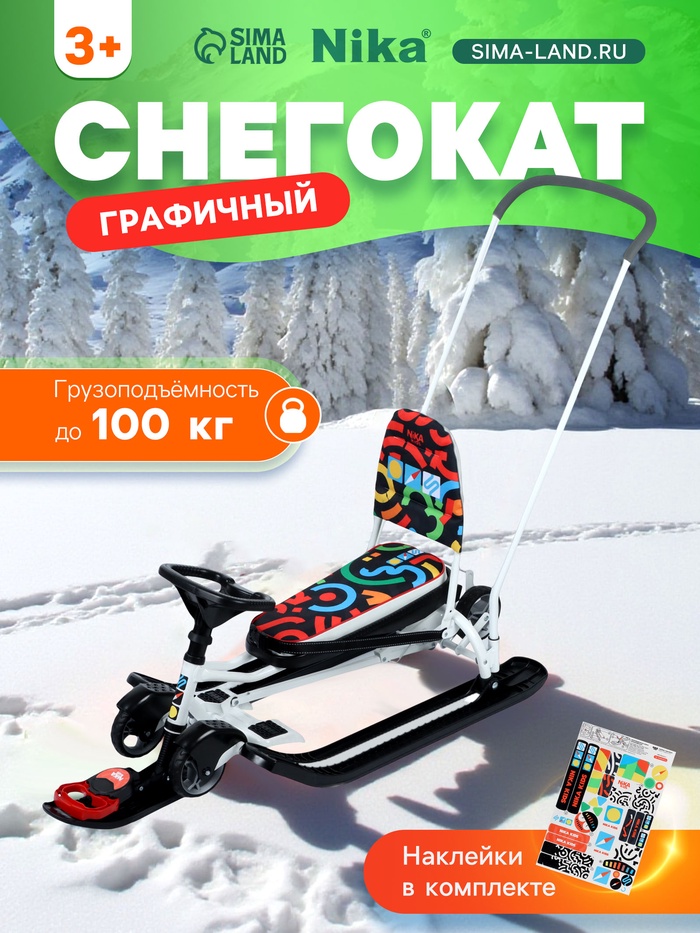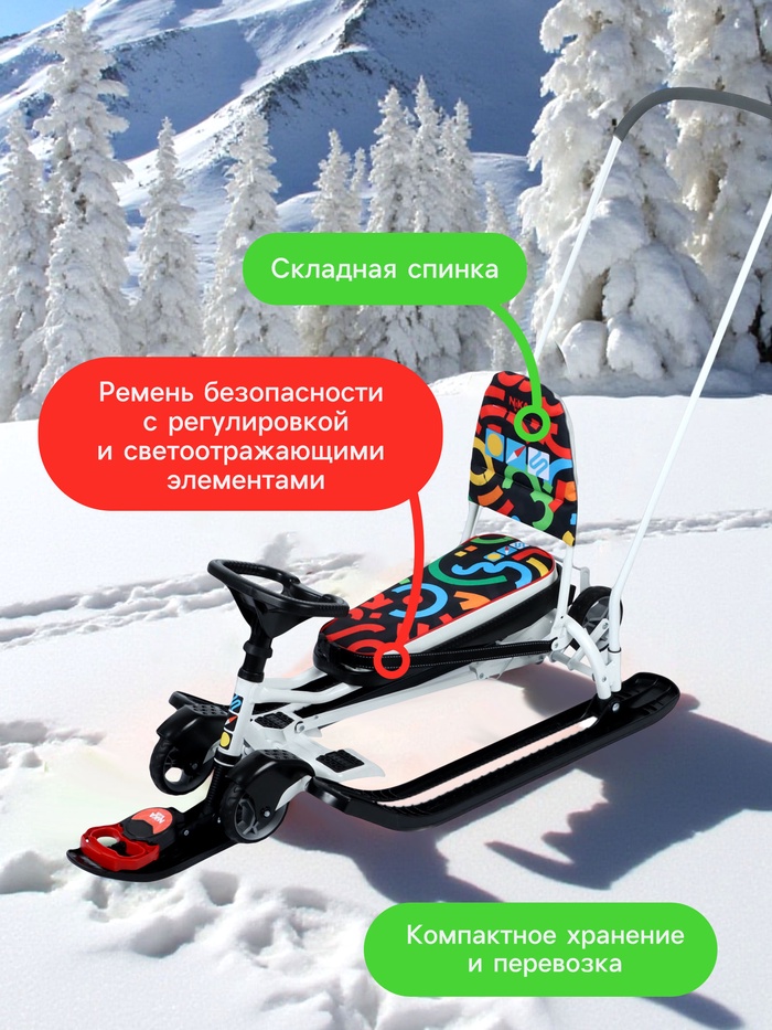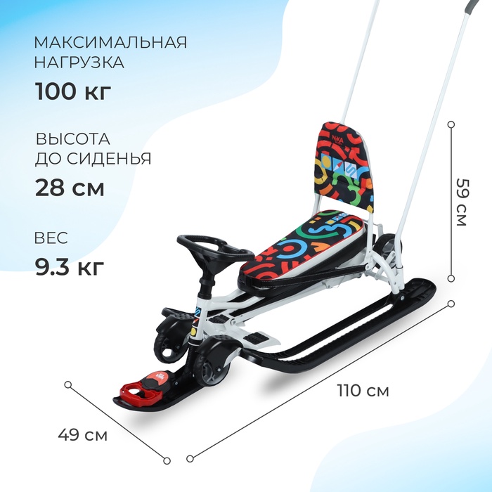 Снегокат с колёсами «Тимка спорт 6 Графичный», ТС6/ГФ, с родительской ручкой, со спинкой и ремнём безопасности