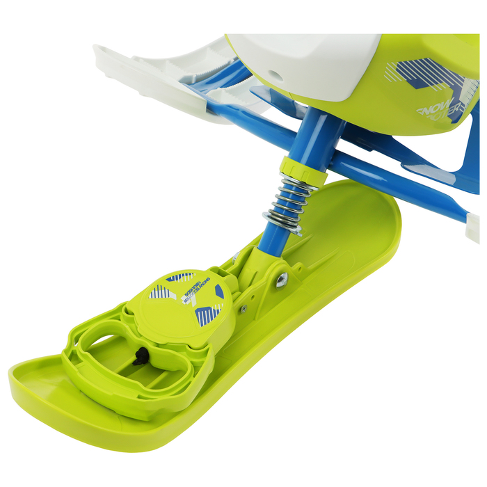Снегокат предназначен для перевозки детей по плотному снегу или льду. Имеет сварную конструкцию из стальных труб, пластиковых элементов и мягкое удлинённое спортивное сиденье, обтянутое искусственной кожей. Оснащён буксировочным тросом с автоматической намоткой, складной спинкой и системой амортизации, которая обеспечивает комфортную поездку по крутым горкам и неровным поверхностям.
