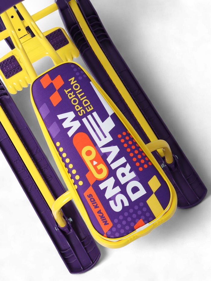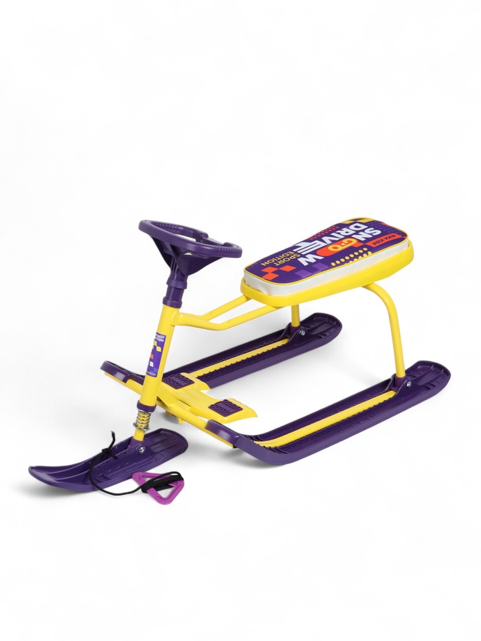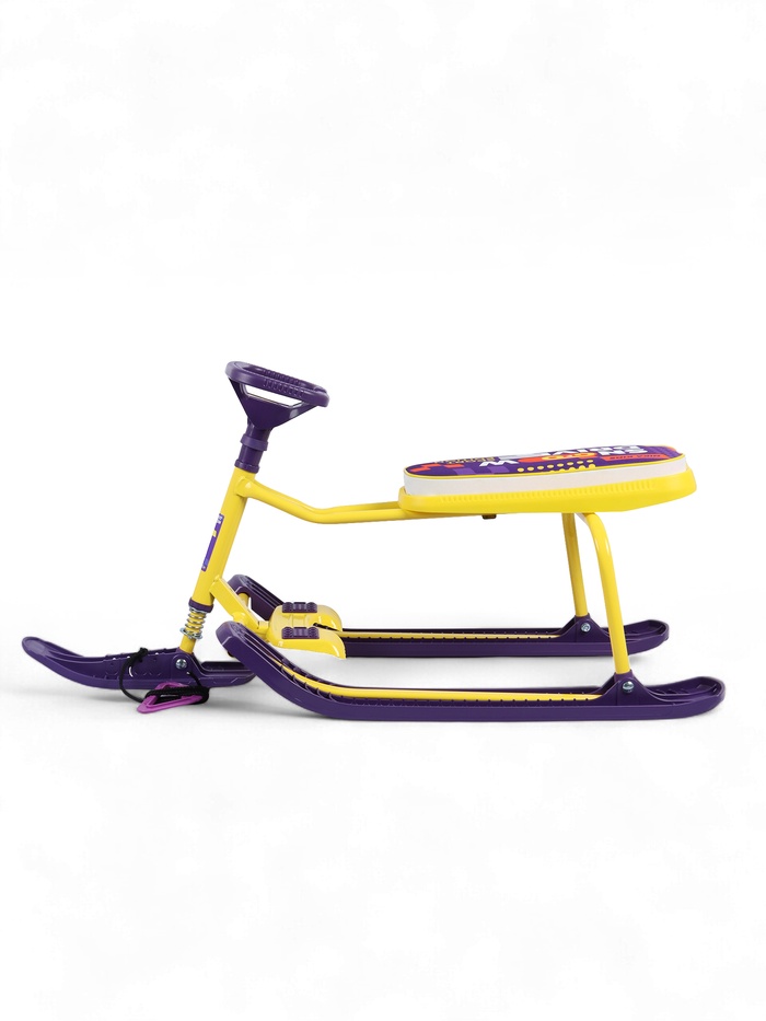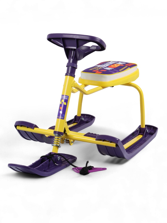 Снегокат предназначен для перевозки детей по плотному снегу или льду, а также для катания с горок. Имеет сварную конструкцию из стальных труб, пластиковых элементов и мягкое сиденье. Оснащён буксировочным тросом. Усиленный тормоз эффективен на обледенелой поверхности и высокой скорости. В комплект входит набор наклеек на снегокат.