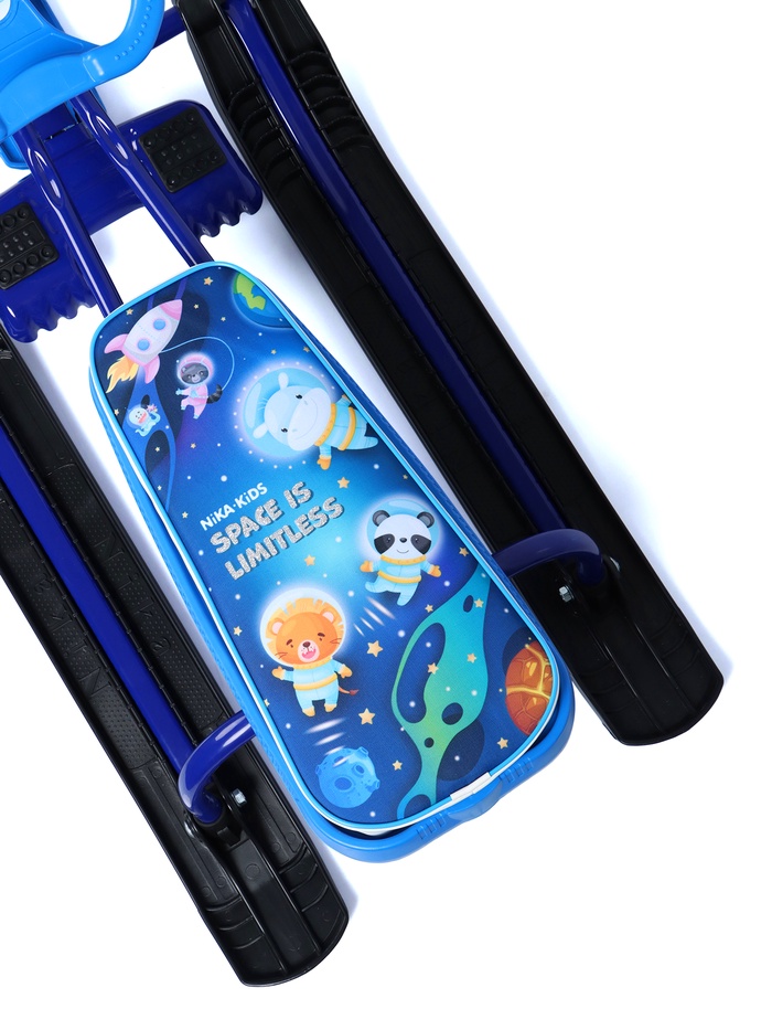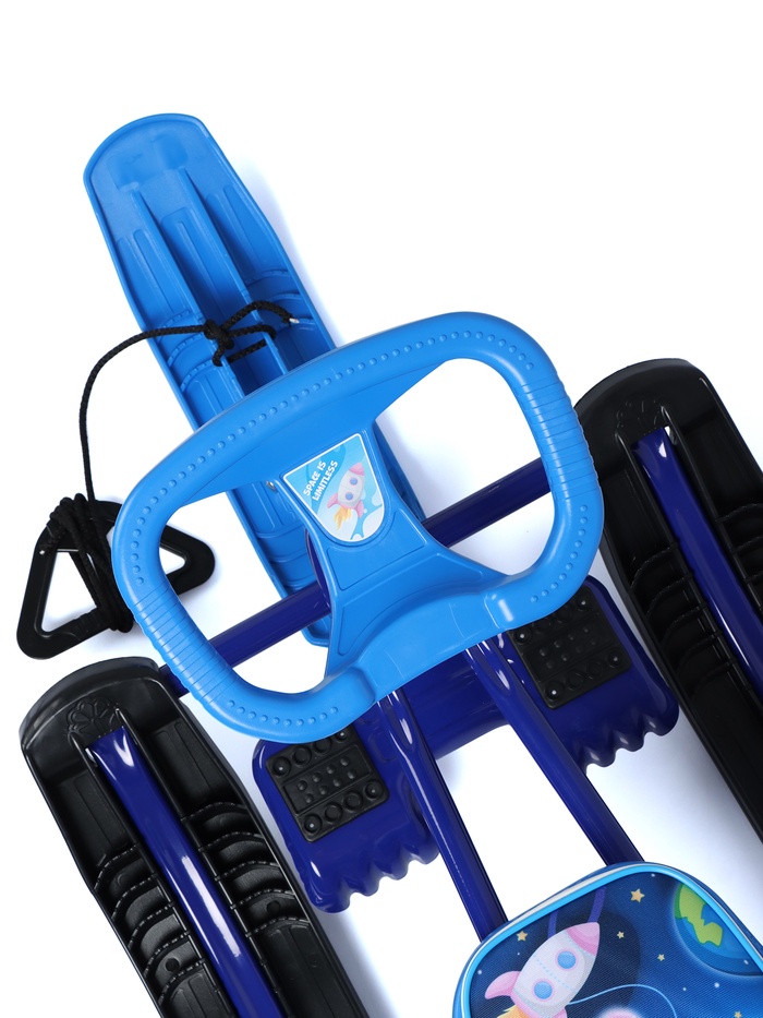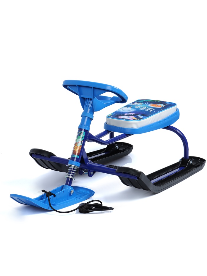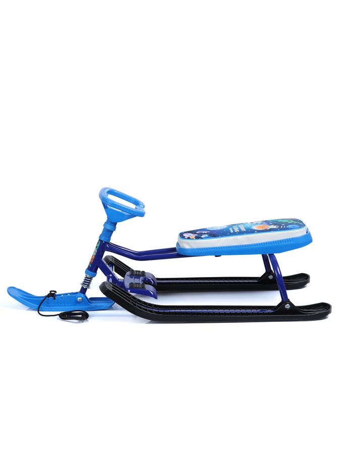 Снегокат предназначен для перевозки детей по плотному снегу или льду, катанию с горок. Имеет сварную конструкцию из стальных труб, пластиковых элементов и мягкое сиденье, обтянутое искусственной кожей с рисунком. Оснащён буксировочным тросом. Усиленный тормоз эффективен на обледенелой поверхности. В комплект входит набор наклеек на снегокат.