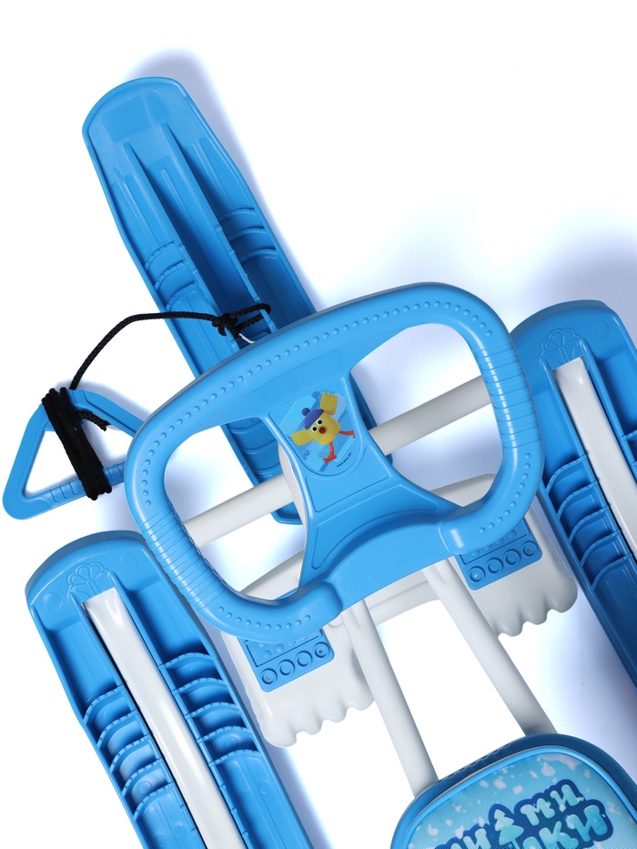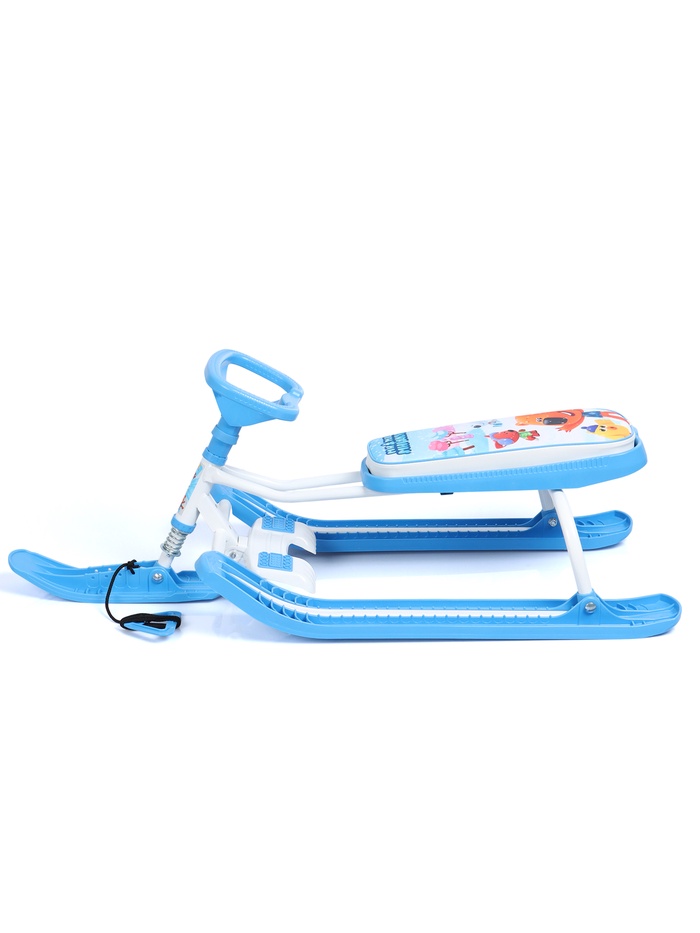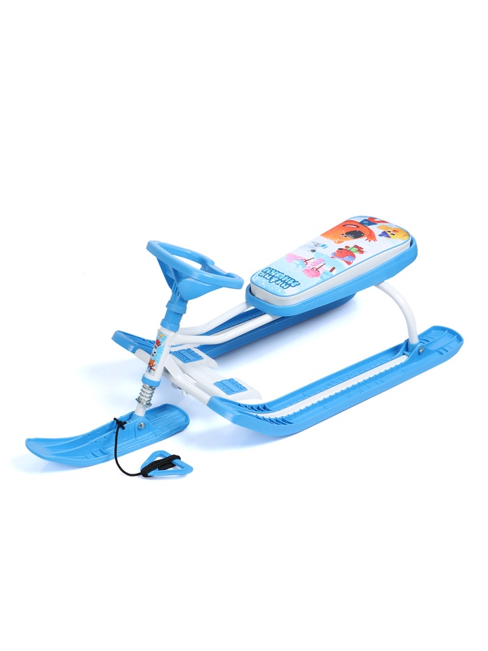 Снегокат предназначен для перевозки детей по плотному снегу или льду, катанию с горок. Имеет сварную конструкцию из стальных труб, пластиковых элементов и мягкое сиденье, обтянутое искусственной кожей с рисунком. Оснащён буксировочным тросом. Усиленный тормоз эффективен на обледенелой поверхности. В комплект входит набор наклеек на снегокат.