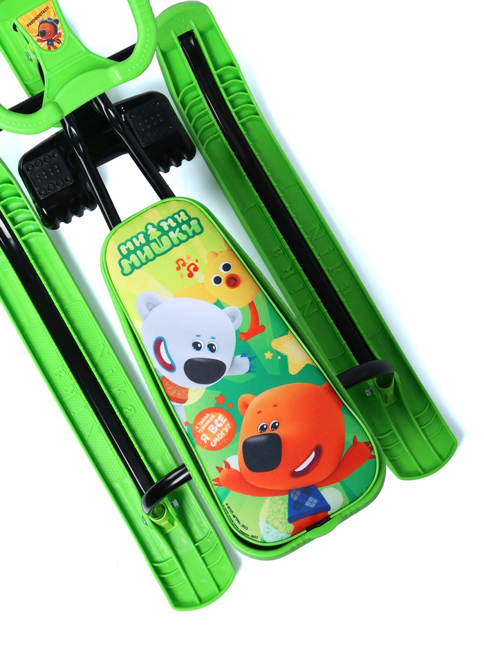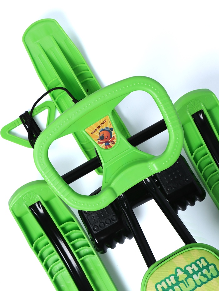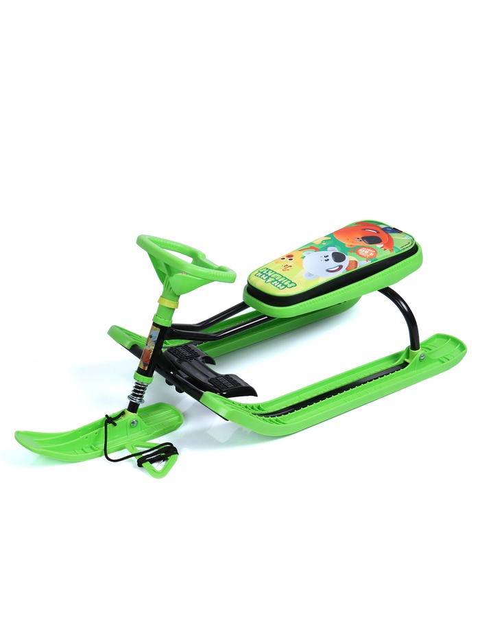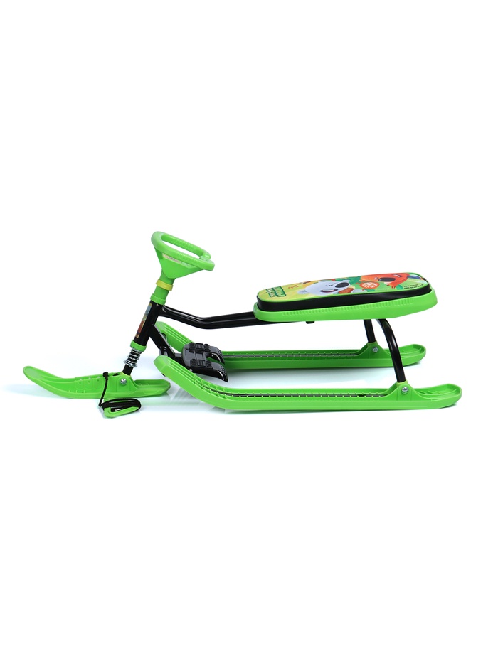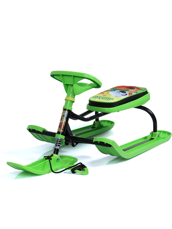 Снегокат предназначен для перевозки детей по плотному снегу или льду, катанию с горок. Имеет сварную конструкцию из стальных труб, пластиковых элементов и мягкое сиденье, обтянутое искусственной кожей с рисунком. Оснащён буксировочным тросом. Усиленный тормоз эффективен на обледенелой поверхности. В комплект входит набор наклеек на снегокат.