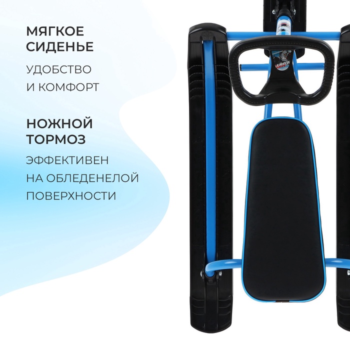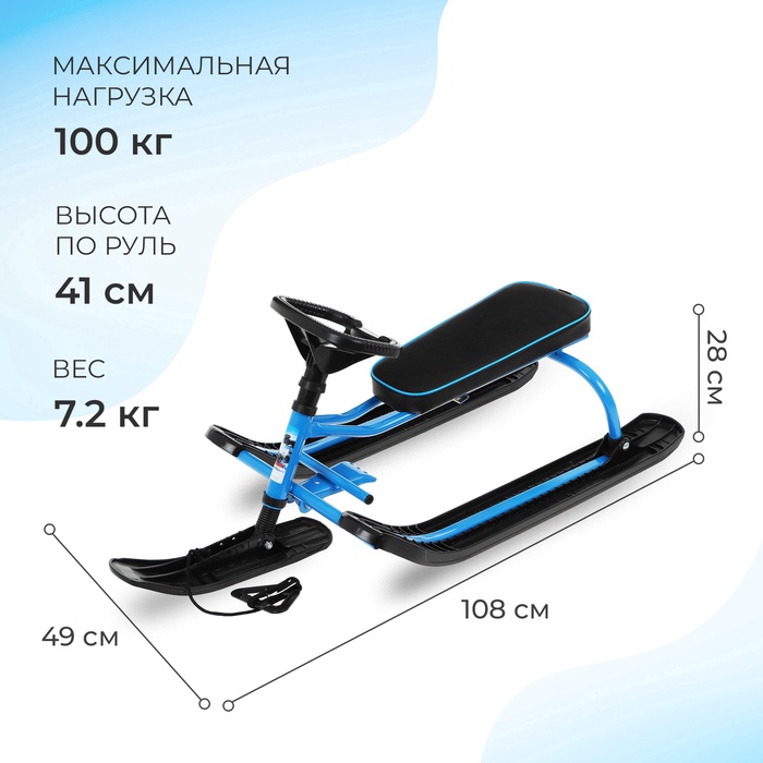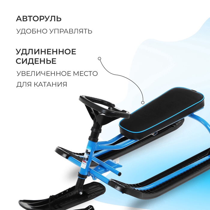Снегокат предназначен для перевозки детей по плотному снегу или льду, катанию с горок. Имеет сварную конструкцию из стальных труб, пластиковых элементов и мягкое сиденье. Оснащён буксировочным тросом. Тормоз эффективен на обледенелой поверхности.