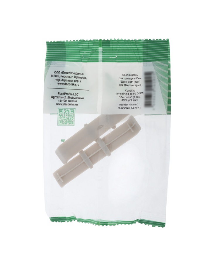 Соединитель для плинтуса 85мм "Деконика" (2шт. во флоупаке), 002 Светло-серый