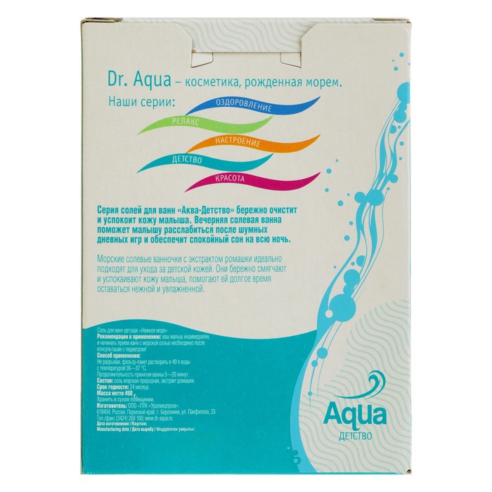 Состав: соль морская природная, экстракт ромашки.