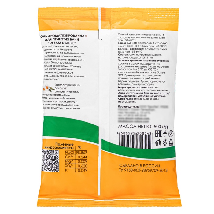 Морская соль для ванны с пеной от бренда DREAM NATURE - это не просто средство для ухода за кожей, но и возможность погрузиться в атмосферу морского побережья, расслабиться и насладиться приятным ароматом ромашки.