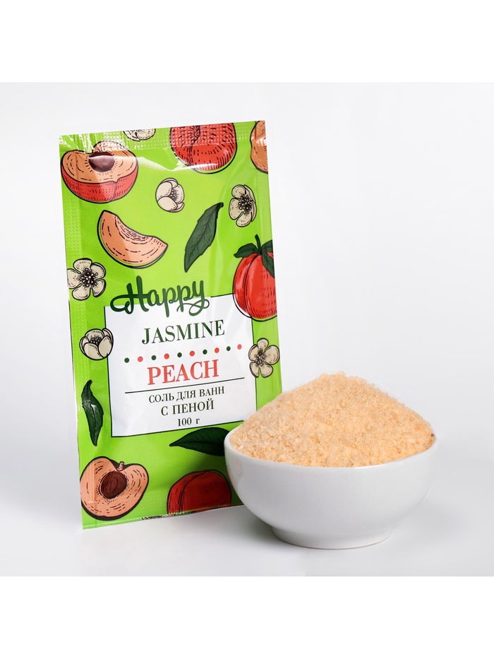 Соль для ванн с пеной "Happy" с персиком и жасмином — это идеальное средство для расслабления и ухода за кожей. Эффектные сочетания персика и жасмина дарят вам не только бодрящий аромат, но и создают атмосферу полного комфорта.