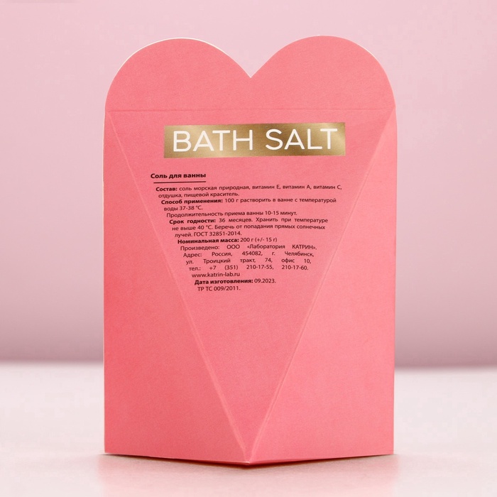 Соль для ванны Love, 200 г, аромат сладкой ванили, Чистое счастье