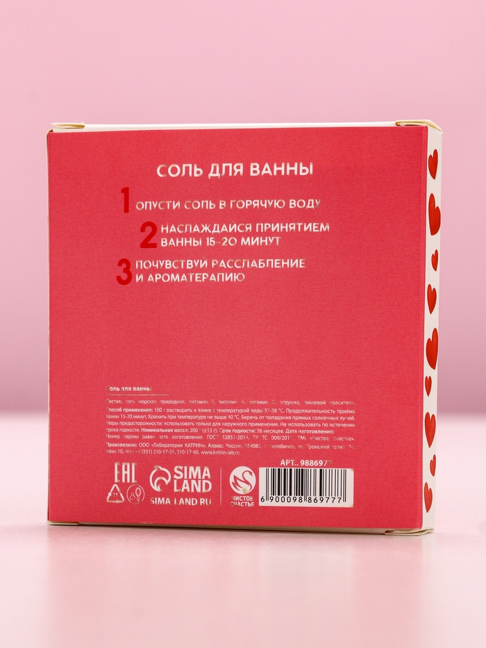Соль для ванны «Для тебя», 200 г, аромат малины, Чистое счастье