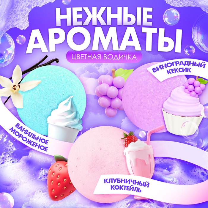 - Три приятных аромата — ванильное мороженое, виноградный кексик и клубничный коктейль.