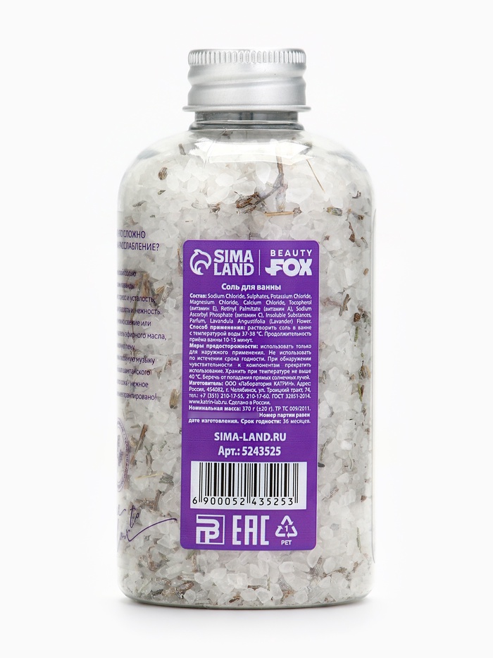 Состав: соль морская, аромамасло, парфюмерная композиция, краситель пищевой.