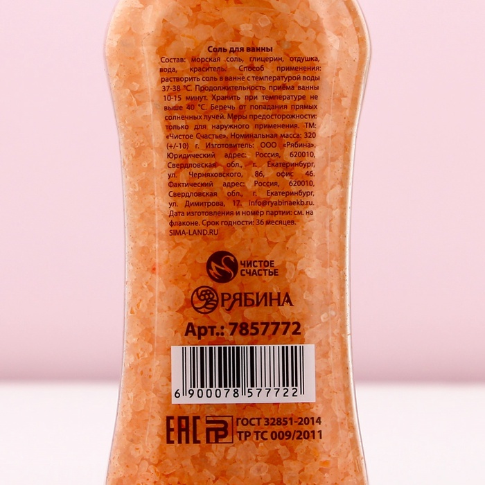 Состав: соль морская природная, витамин Е, витамин А, витамин С, отдушка, пищевой краситель.