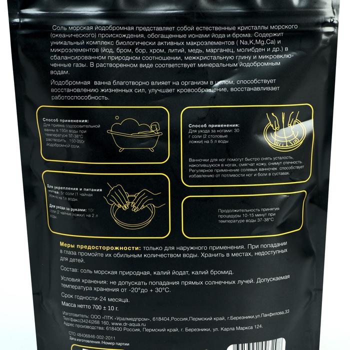 Соль морская природная йодобромная с микроэлементами для ванны, 700 г