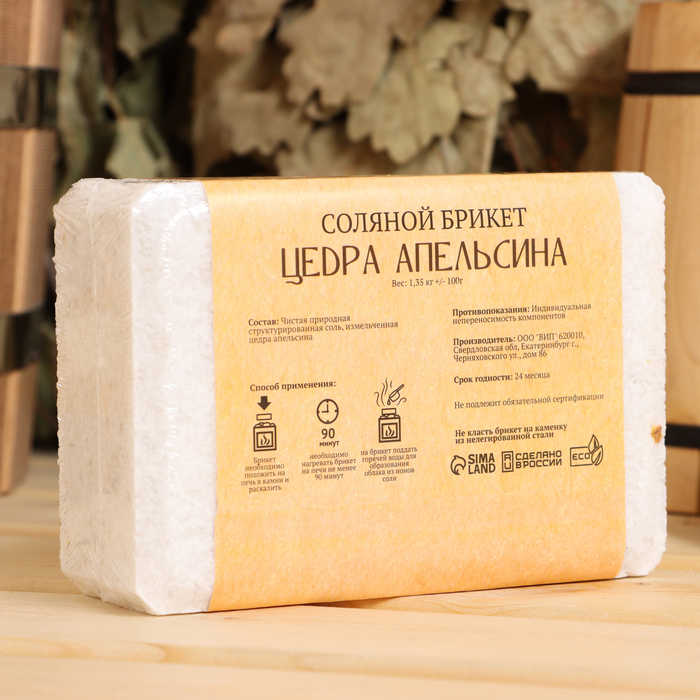 Применение: нагревайте брикет на печи не менее 90 минут, затем поддайте на него горячей воды. Соль наполнит воздух бани ионами, тем самым поможет снять усталость, улучшить кровообращение и общее самочувствие.