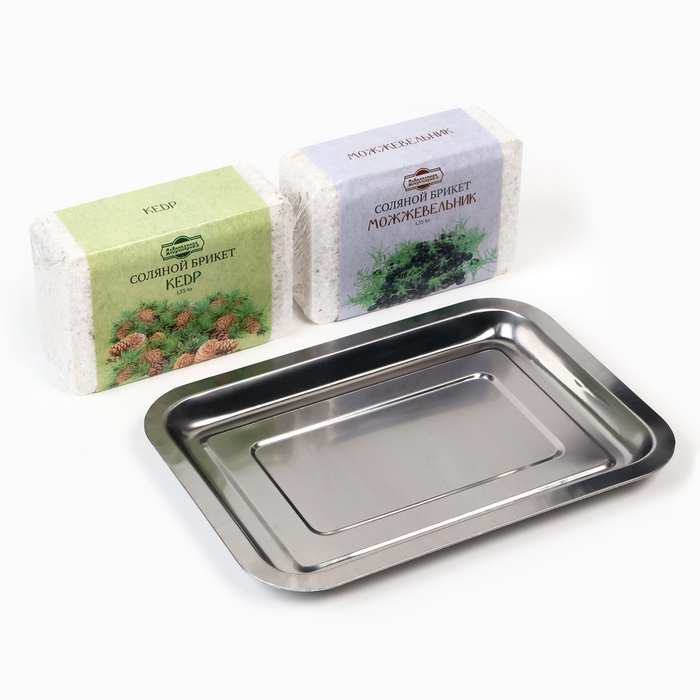 Соляной брикет, "Кедр, Можжевельник" набор 2 шт+ поддон-испаритель