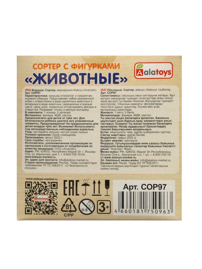Сортер "Куб" СОР97 "Животные"