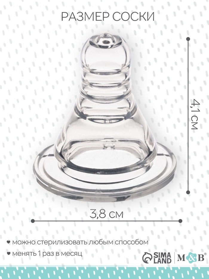 Соска для бутылочки силиконовой M&B, антиколиковая, +3мес., ШГ Ø70 мм