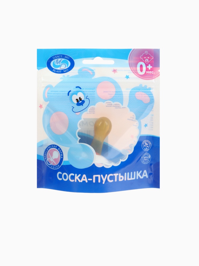 Классическая симметричная форма позволяет постоянно сохранять правильное положение соски во рту. Давать её малышу можно любой стороной.