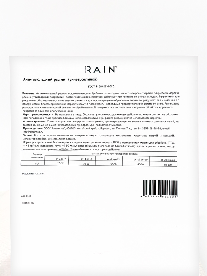 Sound of Rain Антигололедный реагент универсальный 10 кг