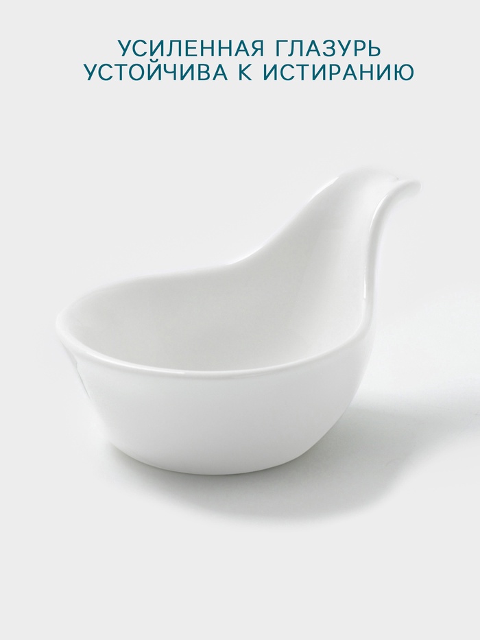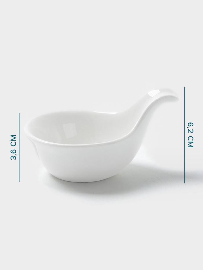 Фарфоровый соусник с ручкой, объемом 80 мл, отличное решение для подачи соусов и заправок. Эстетичный дизайн и белый цвет добавят элегантности вашему столу. Соусник можно использовать в СВЧ-печи и мыть в посудомоечной машине, что делает его еще более практичным и удобным в повседневном использовании.