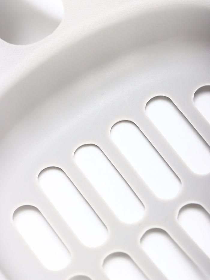 Благодаря его особой конструкции совок можно разместить на узкий и широкий край, на внешнюю и внутреннюю поверхность