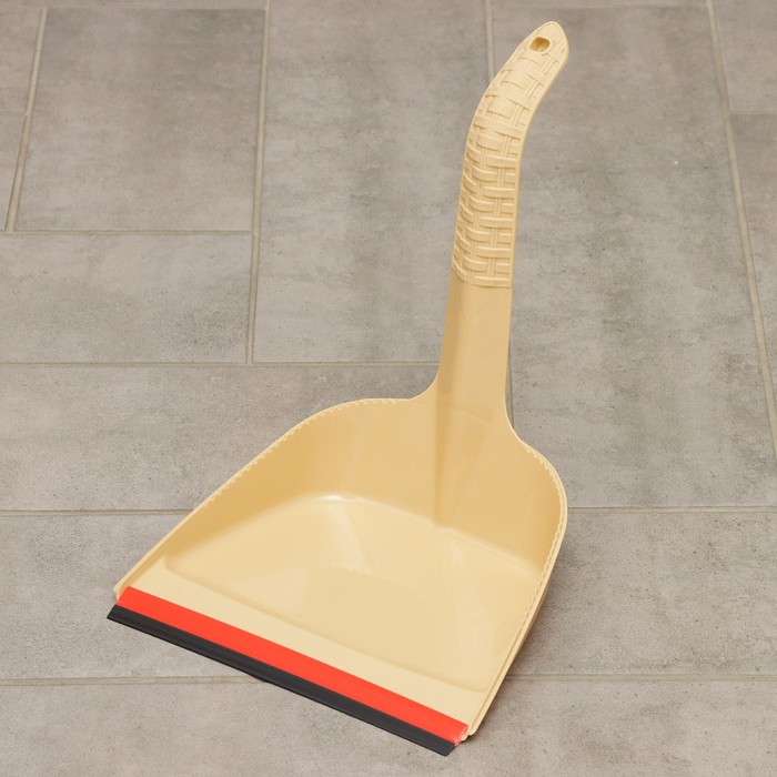 Совок изготовлен из надежного пластика. Рабочая поверхность изделия плотно прилегает к напольному покрытию и обеспечивает отличный результат.