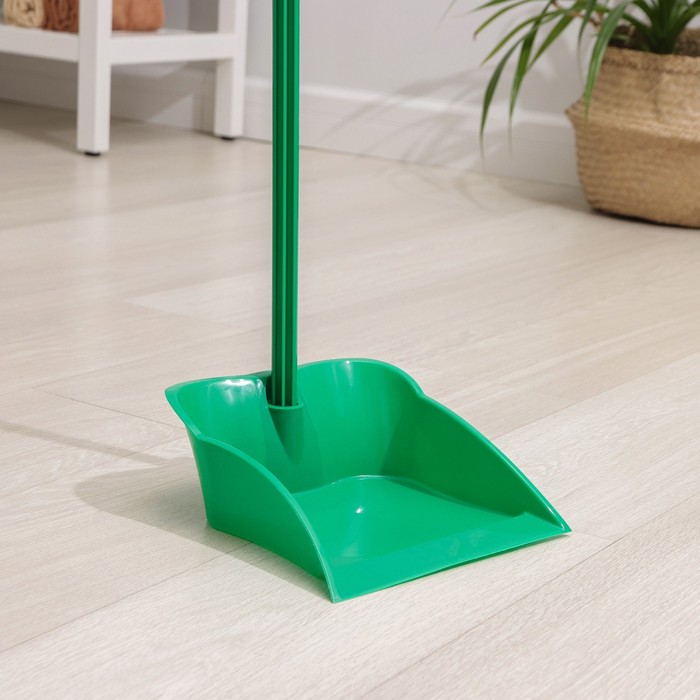 Совок изготовлен из надежного пластика. Рабочая поверхность изделия плотно прилегает к напольному покрытию и обеспечивает отличный результат.