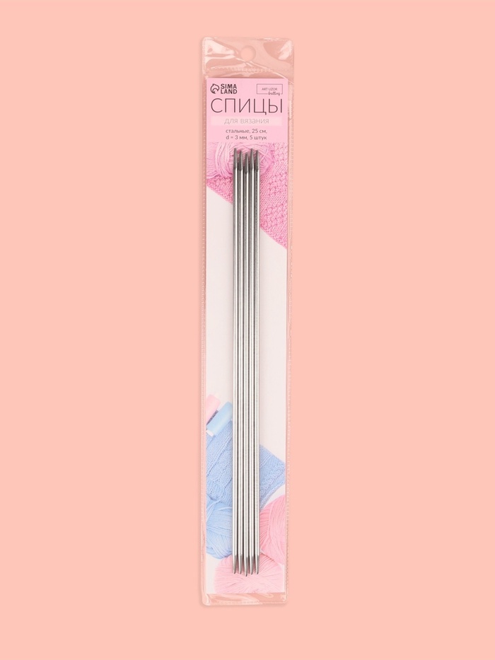 Данные спицы предназначены для вязания чулочно-носочных изделий, шапок, рукавов. Отличаются от круговых количеством (в чулочных сразу 5 рабочих инструментов) и длиной. Как правило, чулочные спицы короткие и подходят для изделий небольшого диаметра.